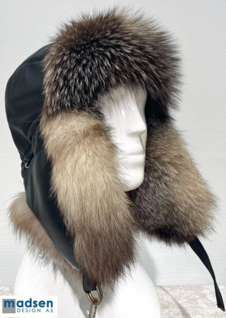 Vakker pelslue med regulerbar størrelse slik at den passer de aller fleste størrelser. Klaffene kan festes bak i nakken, eller oppå hodet for å få en forandring, eller bare for å «lufte litt». Dette er en pelslue som tåler å bli brukt.